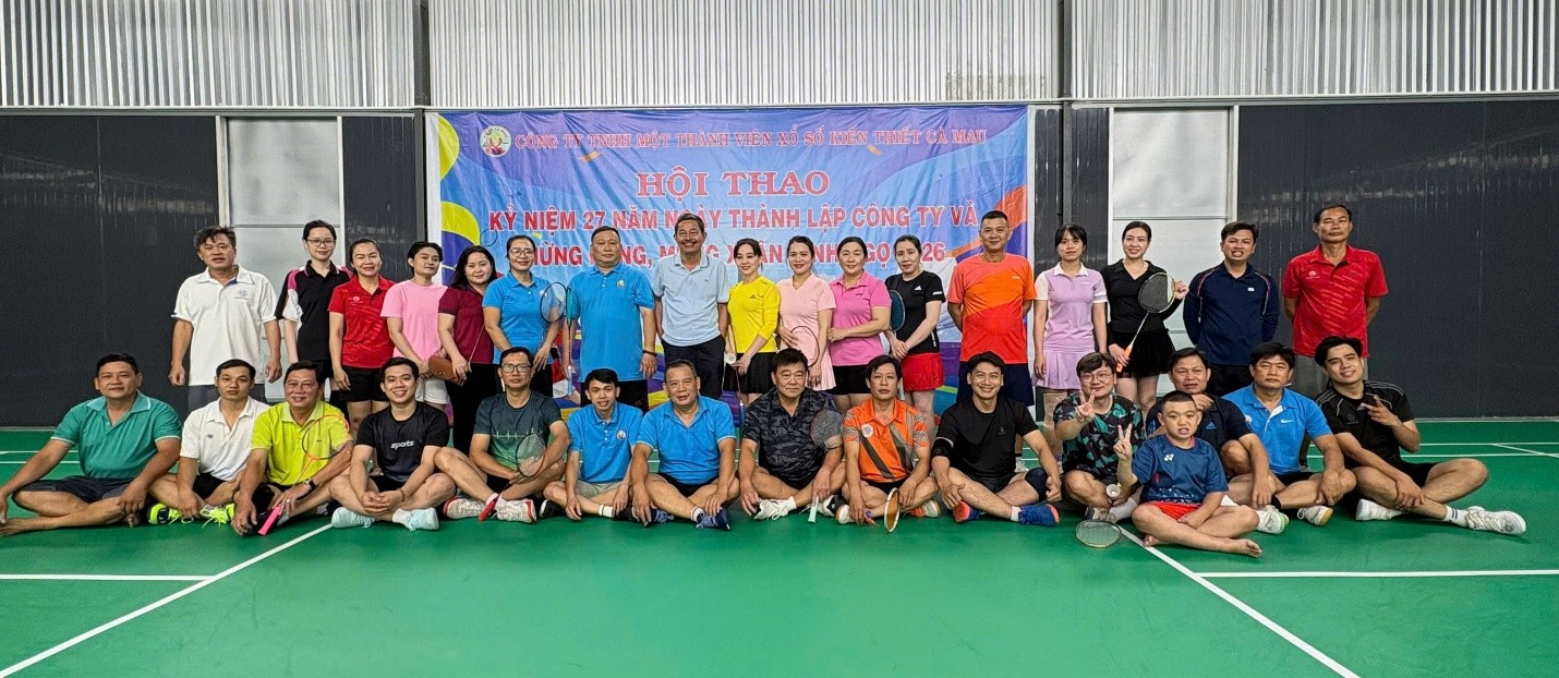 Ngày 17/01/2026, BCH Công đoàn cơ sở Công ty TNHH MTV Xổ số kiến thiết Cà Mau đã tổ chức Hội thao chào mừng kỷ niệm 27 năm thành lập Công ty và Mừng Đảng – Mừng Xuân Bính Ngọ 2026. Đây là hoạt động nhằm thực hiện kế hoạch công tác Công đoàn năm 2026, đồng thời tạo sân chơi lành mạnh, rèn luyện sức khỏe và tăng cường tinh thần đoàn kết giữa cán bộ, nhân viên trong toàn Công ty